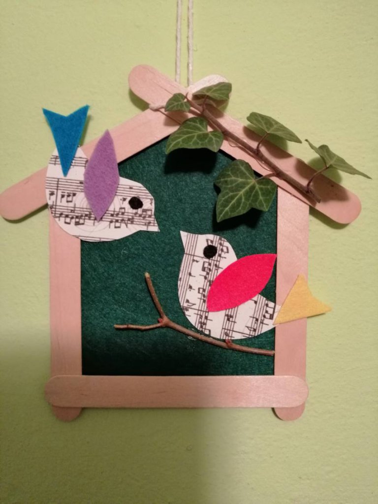 - ROZŚPIEWANY KARMNIK – obejrzenie filmów animowanych z serii DORE i MIO przenoszących widza do krainy wartości rytmicznych, opery i solmizacji, wykonanie przedmiotu dekoracyjnego z patyczków, filcu i papieru nutowego przedstawiającego ptaki w karmniku