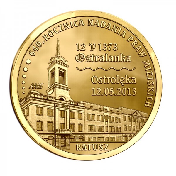 Na rewersie został przedstawiony Ratusz Miejski w Ostrołęce. Nad budynkiem Ratusza widnieje napis: 640. Rocznica nadania praw miejskich oraz daty: 12 V 1373 Ostralanka - Ostrołęka 12.05.2013 stylizowaną czcionką średniowieczną oraz współczesną.