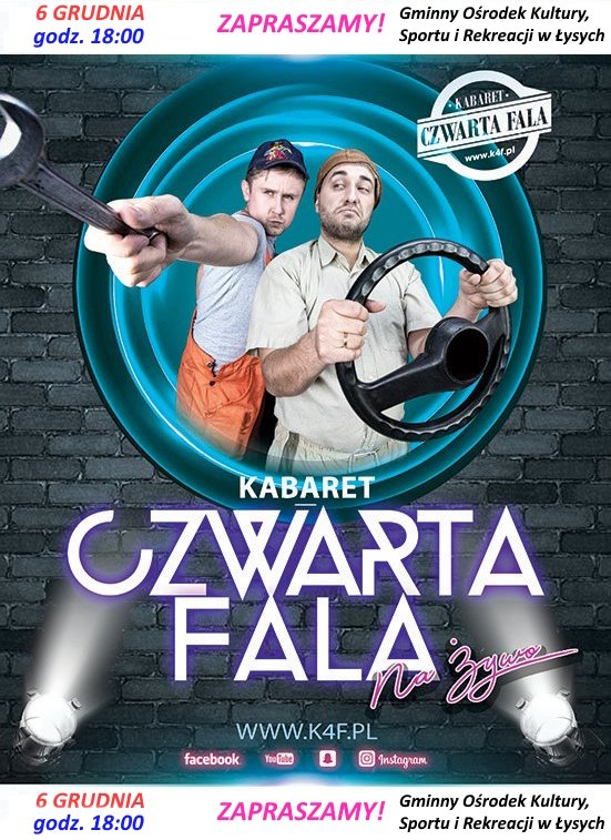 Gotowi na dawkę dobrej zabawy i szczerego śmiechu? Kabaret Czwarta Fala, królowie parodii, przyjeżdżają do Łysych, by rozbawić publiczność do łez!
