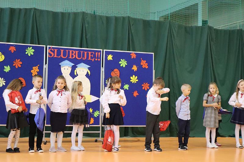Uroczystego pasowania każdego z uczniów dokonała dyrektor szkoły Hanna Politowska, zaś wychowawczyni Jolanta Małkowska oraz goście przyjęli oficjalne ślubowanie. Nie zabrakło prezentów, miłych słów, smakowitego tortu.