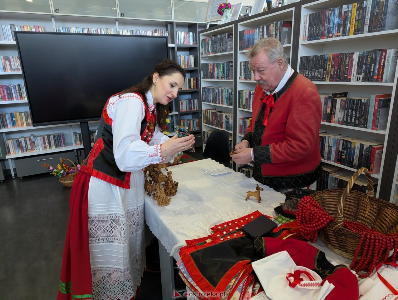 Gmina Kadzidło to region słynący z niezwykłej dbałości o dziedzictwo kulturowe. Dzisiejsze wydarzenie w bibliotece stało się barwnym centrum spotkań z folklorem, gdzie zapach świeżego igliwia mieszał się z radosną atmosferą przedświątecznej krzątanicy. Kiermasz zaoferował bogaty wybór produktów inspirowanych niepowtarzalną tradycją kurpiowską, które są nie tylko dekoracją, ale małym dziełem sztuki.