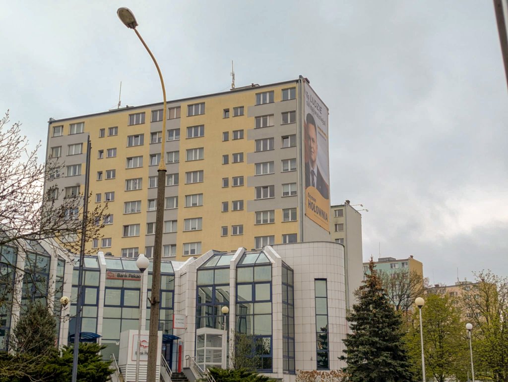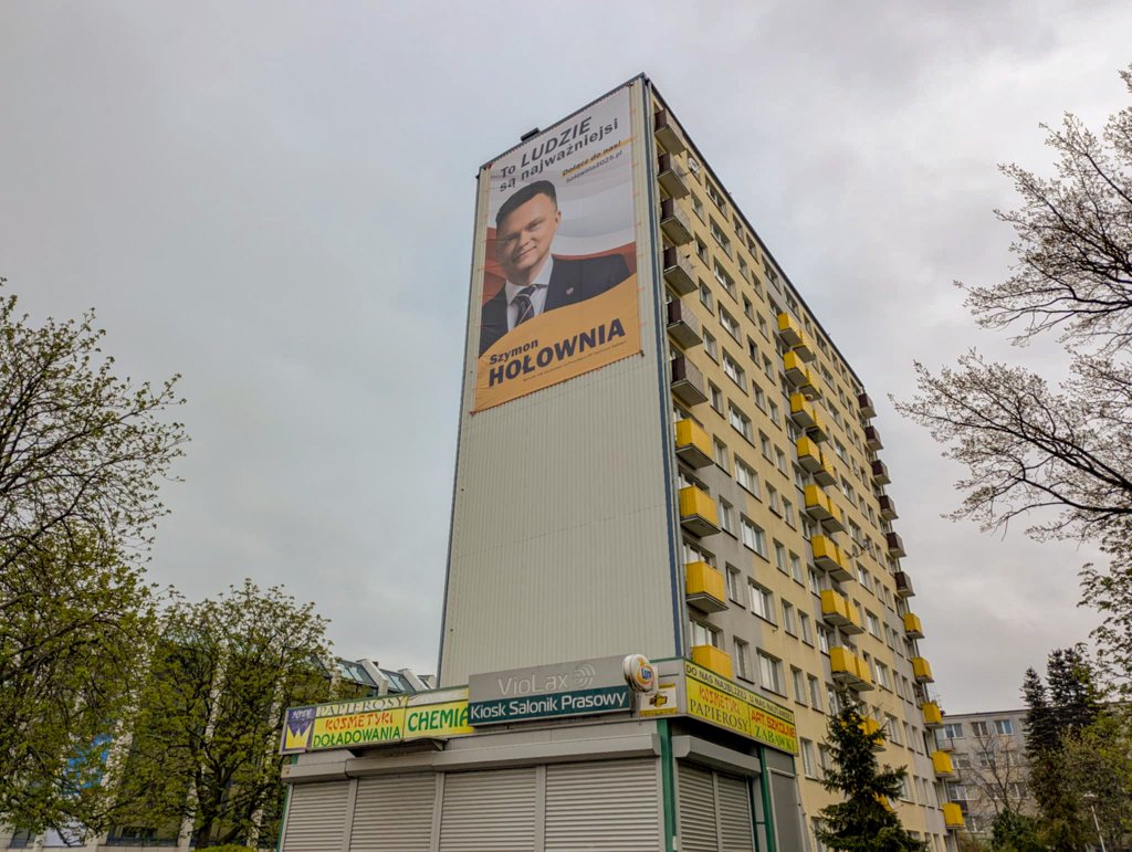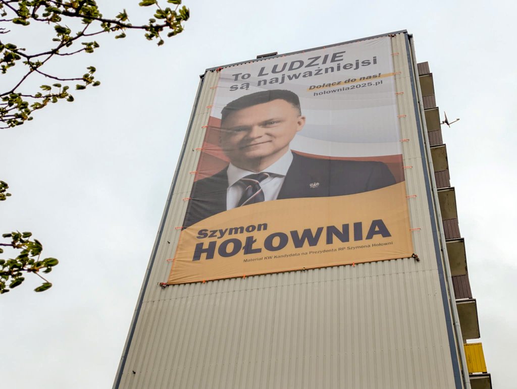 Mieszkańcy Ostrołęki nie mogą przeoczyć najnowszego elementu kampanii wyborczej, który pojawił się w panoramie miasta. Na ścianie 11-piętrowego wieżowca przy ulicy Starosty Kosa zawisła ogromna reklama wyborcza przedstawiająca Szymona Hołownię.