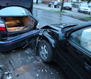 Po zderzeniu samochodów osobowych jeden z nich wjechał na chodnik, a drugi uderzył w stojące na parkingu auta. Na miejsce szybko przybyła policja; potrzebna była również interwencja straży pożarnej.