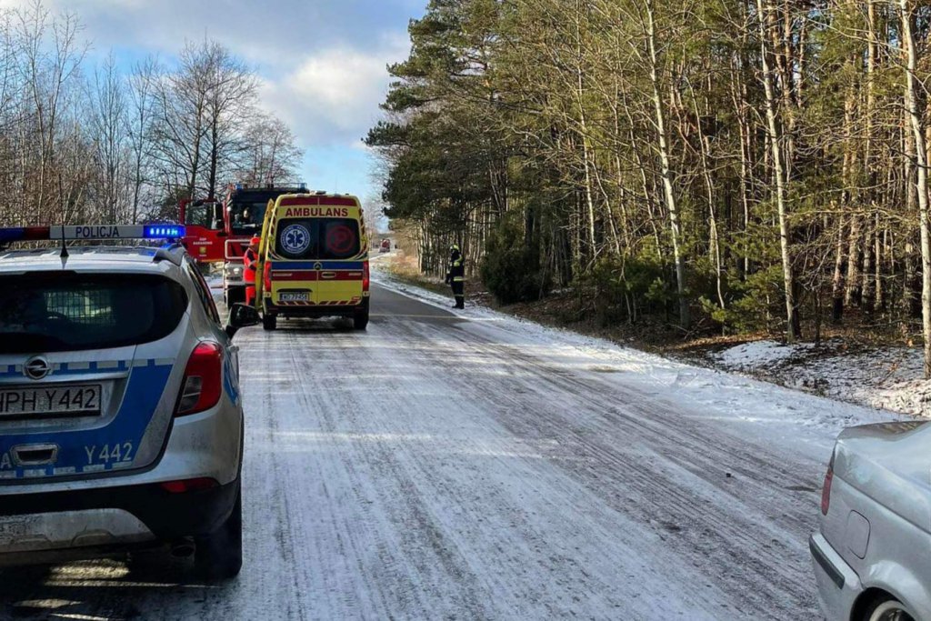 Do wypadku doszło w niedzielę, 26 listopada w godzinach porannych na ulicy Mostowej w miejscowości Baranowo. Kierowca auta osobowego stracił panowanie nad autem na śliskiej i pokrytej warstwą śniegu jezdni, zjechał na pobocze i wpadł do przydrożnego rowu, gdzie auto uderzyło w drzewo.