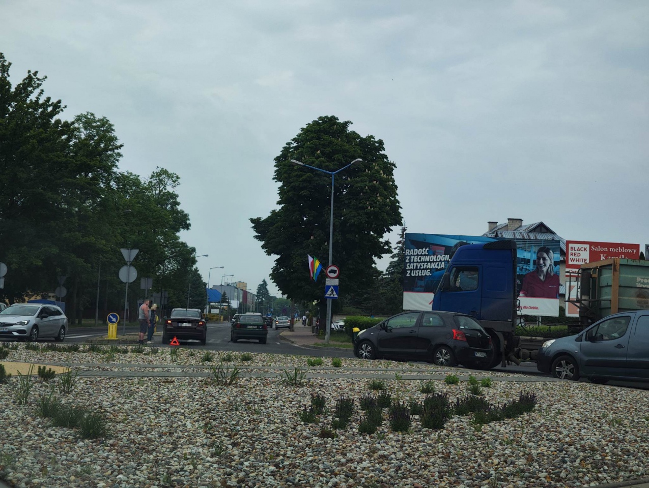 Po kolizji uczestnicy nie zdołali porozumieć się we własnym zakresie w kwestii odpowiedzialności, a ich auta przez dłuższy czas blokowały rondo, znacząco tamując ruch i zmuszając innych kierowców do manewrowania między pojazdami.