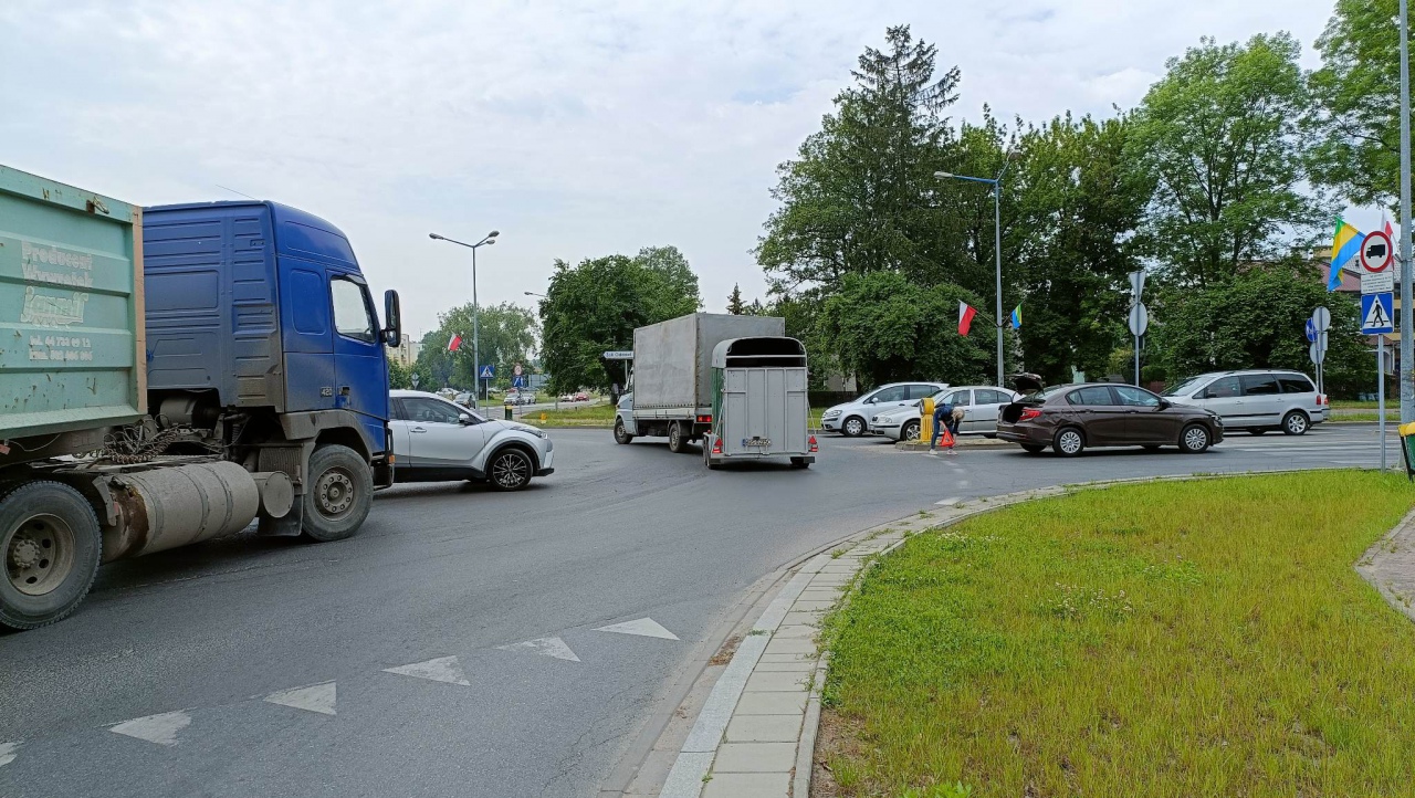 Do kolizji doszło w czwartek, 25 maja przed godziną 10:00 u zbiegu ulic 11 Listopada, Steyera i Witosa. W zdarzeniu udział brała kierująca fiatem i kierowca ciężarówki. Jeden z uczestników zjeżdżając z ronda nie ustąpił pierwszeństwa przejazdu drugiemu. W wyniku zdarzenia nieznacznie uszkodzone zostało mniejsze z aut, nikt nie odniósł obrażeń.