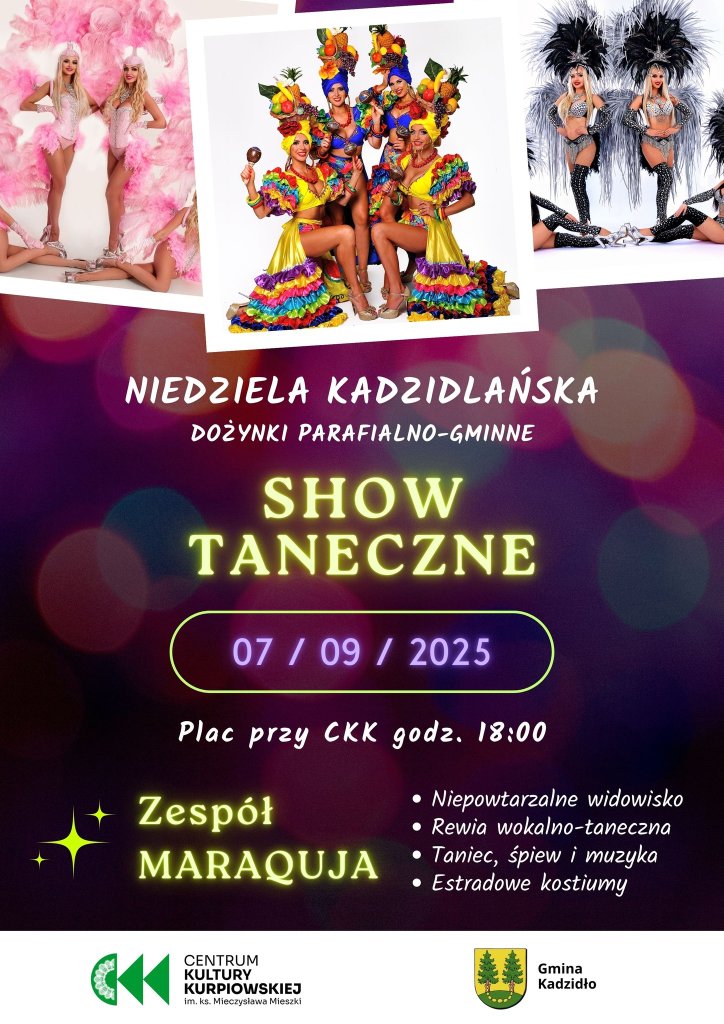 Przygotujcie się na show, które porwie Was do tańca! Koncert Zespołu Maraquja to widowisko wokalno-taneczne pełne energii i koloru. W programie znajdziecie nie tylko porywającą muzykę, ale także żywiołowe układy choreograficzne i barwne stroje estradowe, które dodadzą całości wyjątkowego charakteru.