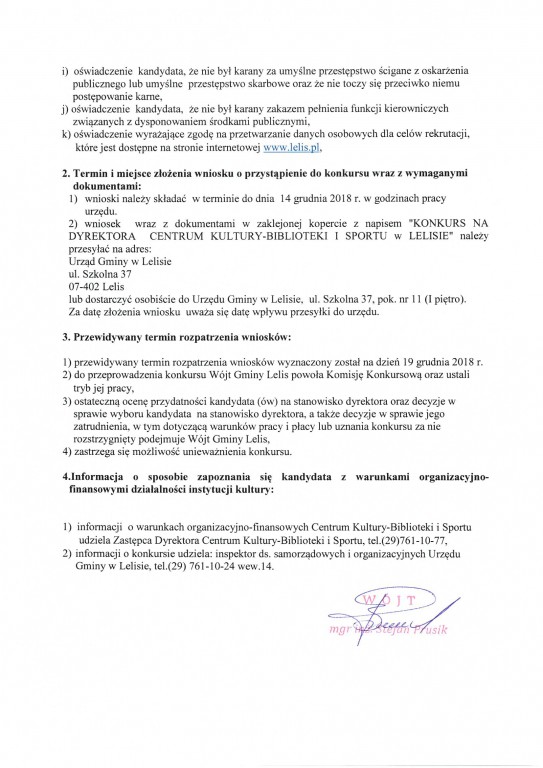 Wójt Stefan PrusikDokumenty składać można do 14 grudnia. Szczegóły na poniższych grafikach.