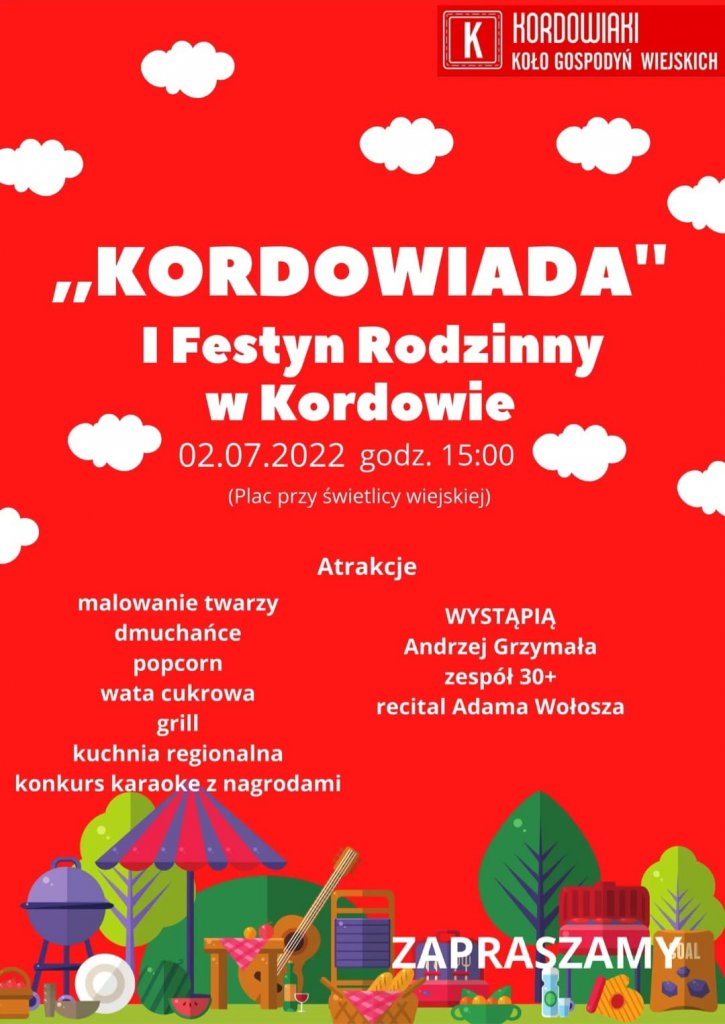 Rodziny z Kordowa spotkają się, by wspólnie spędzić czas. W planach wiele atrakcji - grill, dmuchańce, popcorn, wata cukrowa, malowanie twarzy, przysmaki kuchni regionalnej, konkursy, a także koncerty. Wystąpią Andrzej Grzymała, zespół 30+ oraz Adam Wołosz.