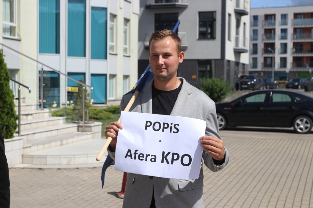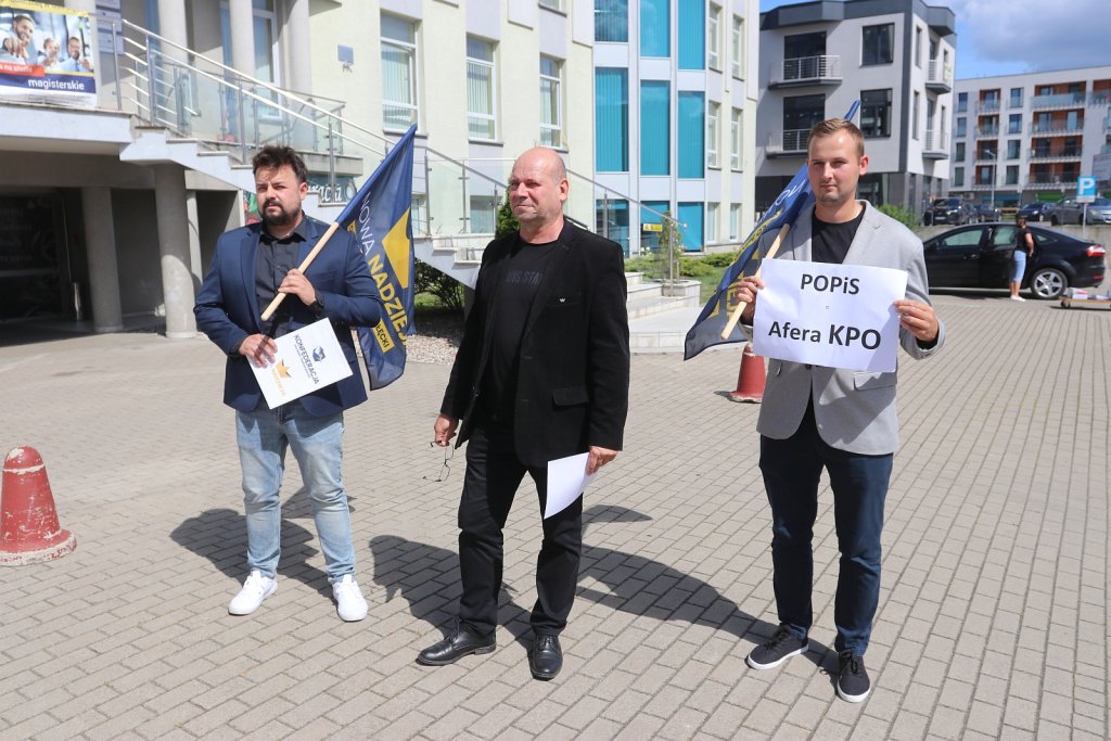 O tej wypowiedzi usłyszeliśmy także w Ostrołęce, przed siedzibą biura Koalicji Obywatelskiej mieszczącym się w budynku WSAP. Konferencję w sprawie wydatkowania środków z KPO zorganizowała partia Nowa Nadzieja, wchodząca w skład Konfederacji. "POPiS Afera KPO" - taki transparent mieli ze sobą działacze partii.