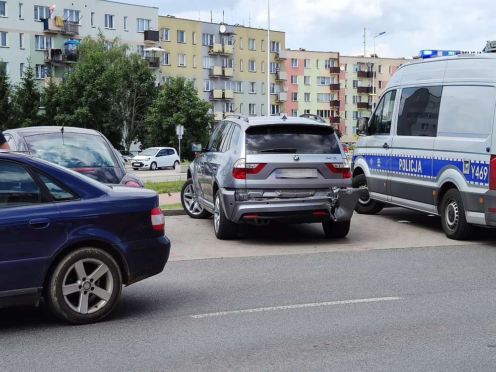 Kierowca bmw cofając z parkingu uderzył w bok jadącego z jego prawej strony audi. Za kierownicą audi siedziała 22-letnia, ciężarna kobieta, którą zabrano na badania do szpitala.