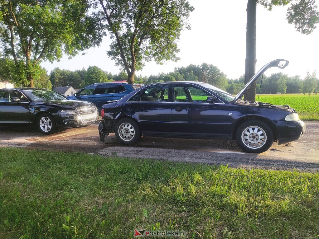 Do zdarzenia doszło wczesnym wieczorem w niedzielę, 19 czerwca w miejscowości Wach (gmina Kadzidło). W zdarzeniu uczestniczyły trzy osobówki poruszające się w tym samym kierunku drogą krajową nr 53 między Ostrołęką a Myszyńcem. Szczęśliwie nikt z uczestników zdarzenia nie odniósł poważniejszych obrażeń. Okoliczności w jakich doszło do kolizji ustalają funkcjonariusze policji. Ruch w tym miejscu odbywał się wahadłowo.