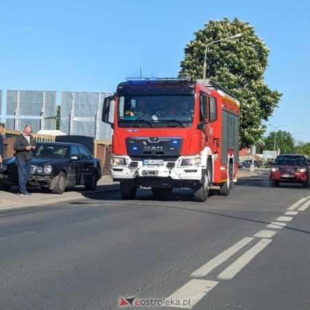 Na miejscu pracują funkcjonariusze ostrołęckiej drogówki wyjaśniając okoliczności zdarzenia.