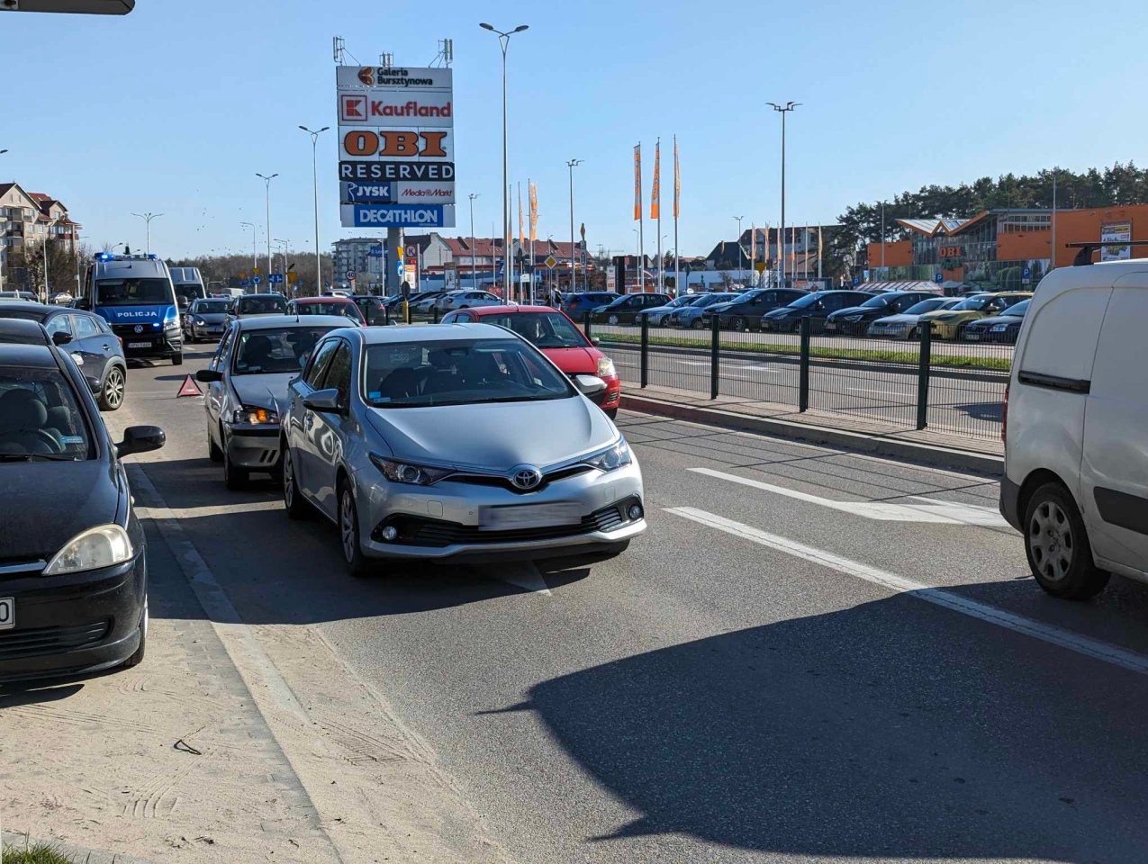 Do kolizji doszło w piątek, 8 marca na ulicy Fieldorfa “Nila” w Ostrołęce. Wszystkie auta poruszały się w tym samym kierunku. Fiat Punto z zawieszką “milicja” za szybą dostał się między toyotę i mazdę. Na szczęście nikt z uczestników nie odniósł obrażeń.