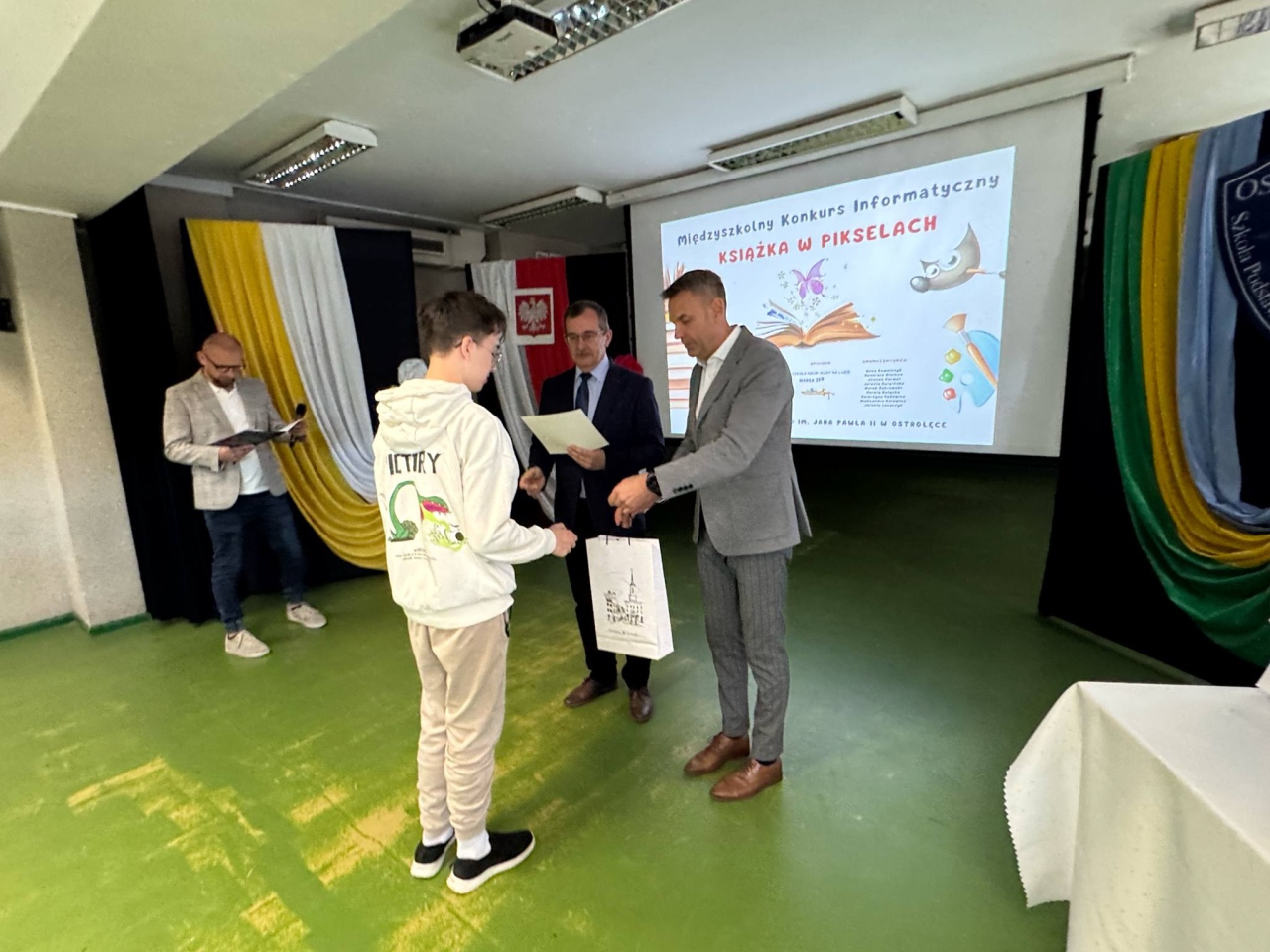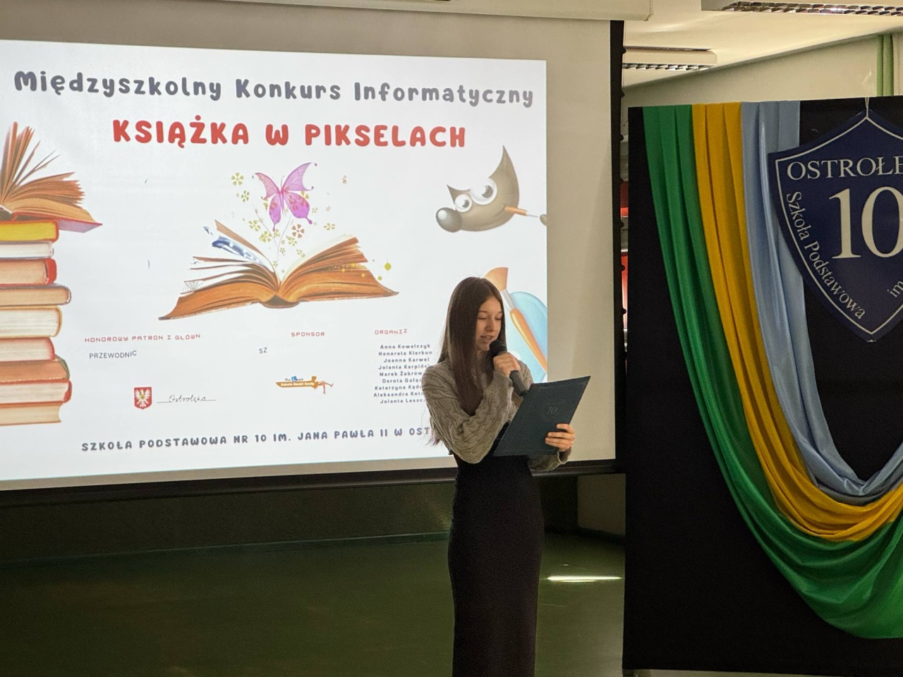 W Szkole Podstawowej nr 10 im. Jana Pawła II w Ostrołęce odbyło się uroczyste podsumowanie Międzyszkolnego Konkursu Informatycznego „Książka w pikselach”. Wydarzenie zorganizowano z okazji Światowego Dnia Książki oraz w ramach Narodowego Programu Rozwoju Czytelnictwa 2.0.