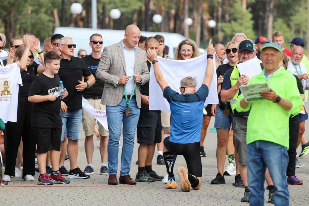 - Biegnę ku pamięci Małgorzaty Brodzik - można było przeczytać na fladze z wizerunkiem wieloletniej myszynieckiej radnej. Po przebiegnięciu 10 km zawodnik klęknął wznosząc palec ku niebu. Trzeba przyznać, że był to piękny i niezwykle poruszający gest, pokazujący, że ludzie, którzy odeszli do wieczności, wciąż żyją w naszych sercach.