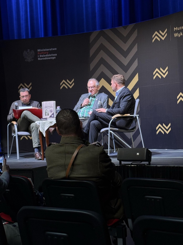W sali kinowo-konferencyjnej Muzeum miała miejsce pasjonująca dyskusja z autorami książki Pod znakiem „Orła” i „Tęczy”. Trzy komendy XVI Okręgu Narodowego Zjednoczenia Wojskowego na północnym Mazowszu, tom 1. Monografia (Warszawa 2025). Spotkanie z dr. Kazimierzem Krajewskim i dr. Tomaszem Łabuszewskim, czołowymi badaczami powojennej konspiracji, poprowadził Michał Ostapiuk, kierownik Działu Naukowo-Wydawniczego MŻW.