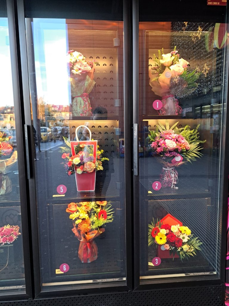 Wiele osób, gdy uzupełniamy kwiatomat podchodzi i zadaje pytania, czy może dotknąć konkretnego bukietu bo chce się przekonać czy nie jest on sztuczny. Zapewniam, że bukiety i flowerboxy, które znajdziecie w kwiatomacie, to kompozycje w pełni naturalne, stworzone z wykorzystaniem kwiatów naturalnych i zieleni ciętej.