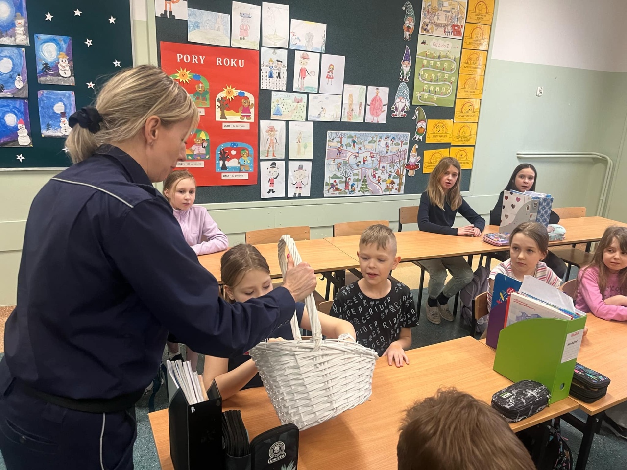 Tuż przed rozpoczęciem zimowych ferii uczniowie Szkoły Podstawowej nr 10 im. św. Jana Pawła II w Ostrołęce wzięli udział w wyjątkowej lekcji. Tym razem nie były to jednak typowe zajęcia szkolne, a spotkanie z przedstawicielką Komendy Miejskiej Policji w Ostrołęce – asp. sztab. Magdaleną Eliasz z zespołu ds. profilaktyki społecznej, nieletnich i patologii Wydziału Prewencji.