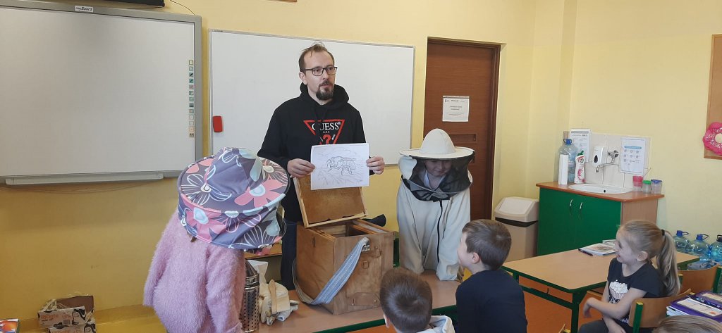 Wszyscy z zainteresowaniem słuchali opowieści o życiu i zwyczajach pszczół, o tym jak zbierają pyłek, czym się żywią, jak spędzają zimę, ile kwiatów muszą odwiedzić, aby wytworzyć kropelkę miodu, jak się rozmnażają i w jaki sposób wychowują swoje potomstwo. Pan pszczelarz wyjaśnił też dzieciom, czym różni się osa od pszczoły. Na zakończenie spotkania odbyła się degustacja miodu. Bardzo dziękujemy Panu Marcinowi Korzenieckiemu za przekazanie dzieciom cennej wiedzy na temat życia pszczół i pracy pszczelarza.- informuje Szkoła Podstawowa nr 6.