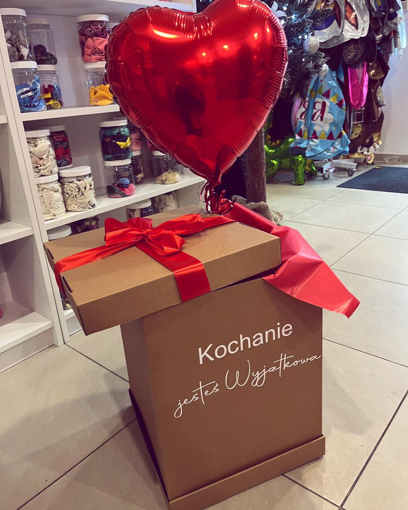 Jest jeszcze coś! To BOX balonowy, który jest wspaniałym pomysłem na prezent. Pudło, w nim pełno balonów, wstążek i innych kolorowych dekoracji. Ten podarunek sprawdzi się na niemal każdą okazję. Walentynki, ślub, urodziny? Jak najbardziej!