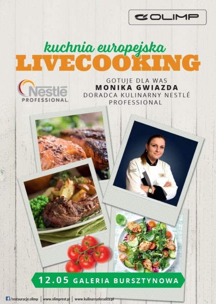 12 maja, w godzinach 10.00 – 15.00, zapraszamy do Restauracji Olimp w Galerii Bursztynowej, gdzie specjalnie dla Was pod czujnym okiem Szefowej Kuchni Restauracji Olimp – Anny Laskowskiej, gotować będzie na żywo Doradca Kulinarny Nestle Professional – Monika Gwiazda. To doskonała okazja, do spróbowania potraw inspirowanych kuchnią europejską. Monika przygotuje dla Was żeberka BBQ z pieczonymi w rozmarynie ziemniakami oraz sałatkę z kurczakiem i dipem meksykańskim. Jak zawsze będzie smacznie, świeżo i różnorodnie.