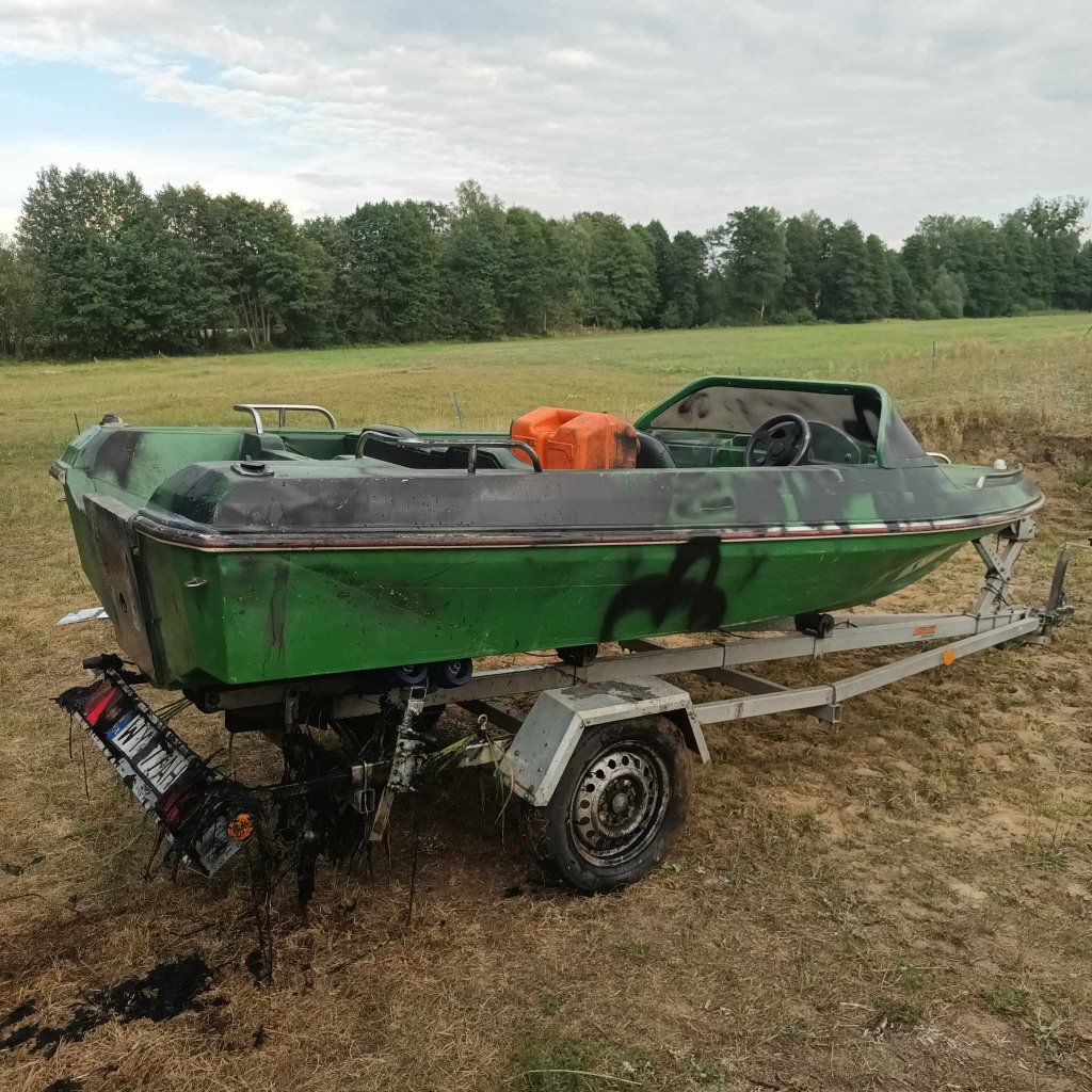 W miniony weekend łódkę i przyczepę odnaleziono na starorzeczu Narwi w rejonie miejscowości Nowosiedliny na granicy województwa mazowieckiego i podlaskiego. Złodzieje zabrali z łódki silnik i echosondę. Samą łódź zniszczyli i porzucili.