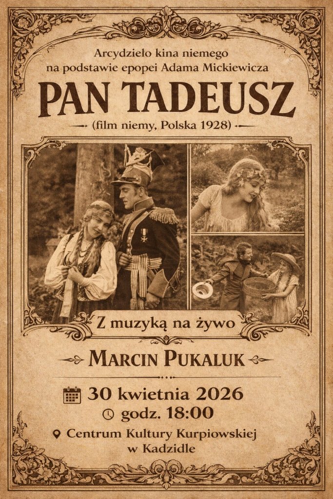 Z okazji nadchodzącego Święta Konstytucji 3 Maja, Centrum Kultury Kurpiowskiej im. Ks. Mieczysława Mieszki w Kadzidle przygotowało dla mieszkańców regionu wydarzenie o wyjątkowej skali artystycznej. Już 30 kwietnia sala widowiskowa zamieni się w staromodne kino, by gościć pierwszą w historii polskiej kinematografii ekranizację narodowej epopei Adama Mickiewicza.