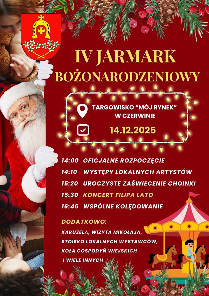 Harmonogram IV Jarmarku Bożonarodzeniowego w Czerwinie (14.12.2025):