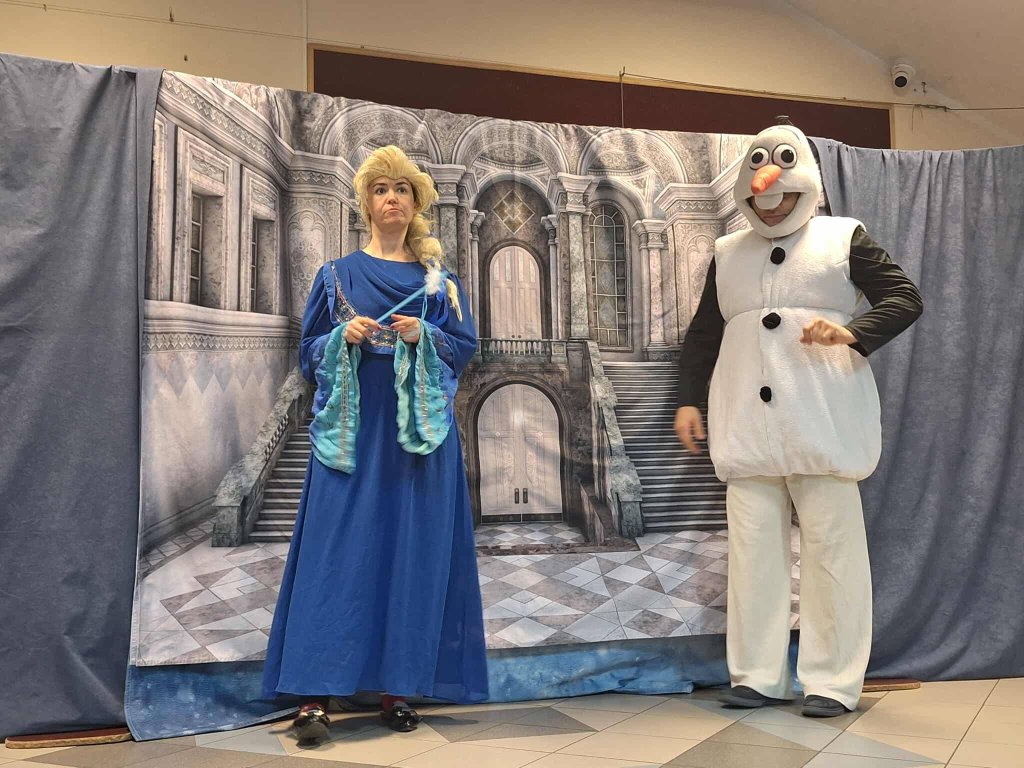 Aktorzy przybliżyli dzieciom historię inspirowaną popularną bajką. Na scenie wystąpiły postacie Elsy i Anny, jednak największe zainteresowanie wzbudziła postać wesołego Bałwana. Dzięki humorystycznemu podejściu i bezpośredniemu kontaktowi z widownią, postać ta stała się głównym punktem programu, wywołując żywe reakcje wśród dzieci.