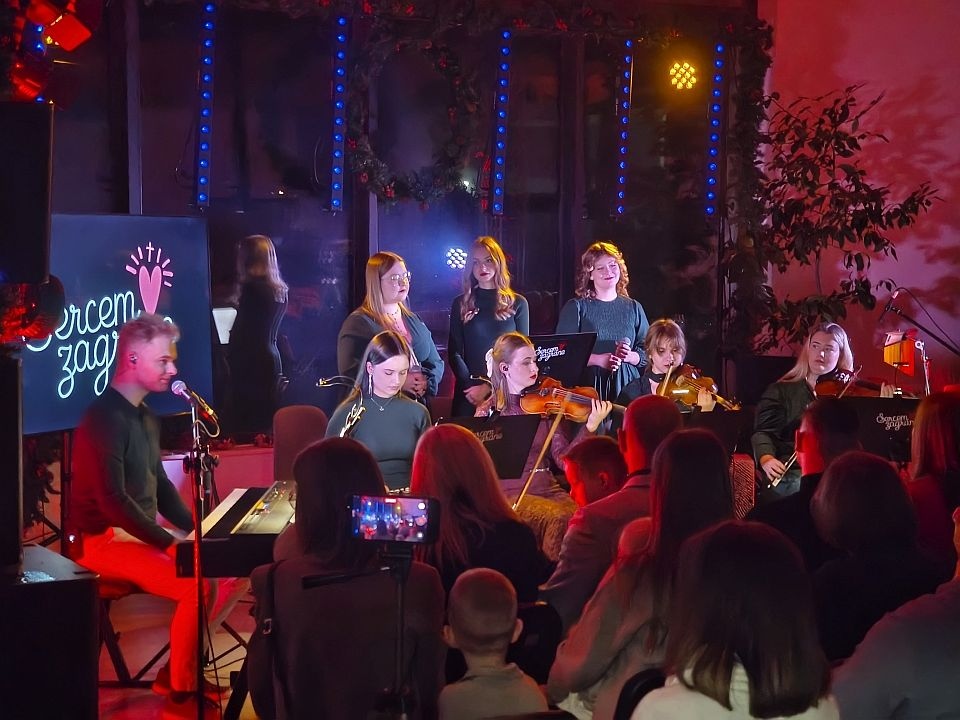 O godzinie 17:00 w bibliotece rozbrzmiały pierwsze dźwięki kolęd i pastorałek w wykonaniu Zespołu "Sercem zagrane". Artyści, wierni swojej nazwie, zagrali z pełnym zaangażowaniem i sercem, wprowadzając publiczność w magiczny nastrój zbliżających się Świąt Bożego Narodzenia.