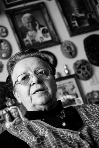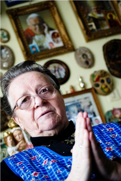 – Trzy lata temu zmarł Samsel, znajomy z sąsiedniej wsi. Po tylu latach przyśnił mi się, którejś nocy. Mówił: „ja to, tu pracuję ciężko. Ty daj, co święto na mszę za dusze nasze zbłąkane. Warunek jest jeden to musi być składkowe, pamiętaj abyś sama nie dała. Zachcij też obrazka”. To przeszłam po wsi, baby dały a to 50 groszy a to złotówkę a resztę sama dołożyłam. Co święto czy niedzielę daję na msze za tych w czyśćcu, by im lżej było.