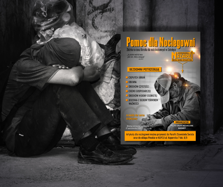 Z nadejściem jesieni i zbliżającą się zimą problem osób bezdomnych staje się szczególnie palący. Męska Grupa Różańcowa Nazaret z Ostrołęki organizuje zbiórkę artykułów pierwszej potrzeby dla najbardziej potrzebujących.