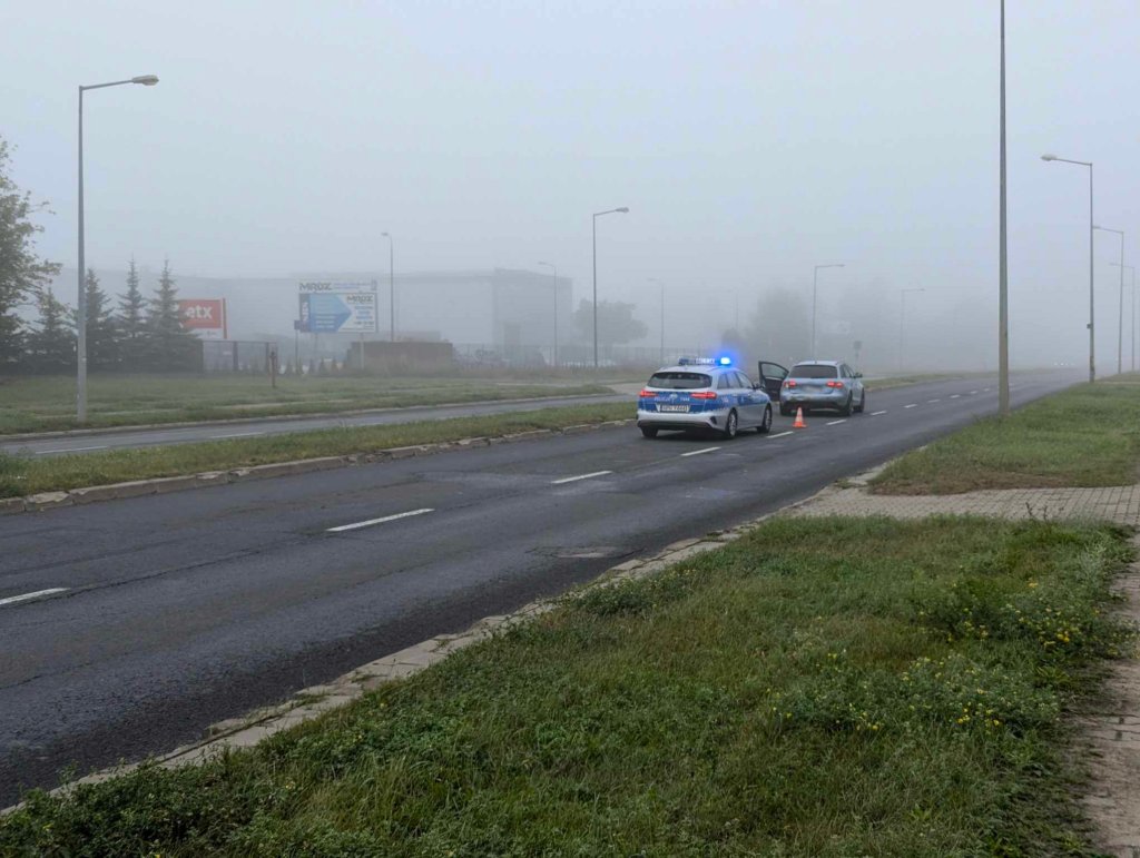 Nieudany manewr na obwodnicy zakończony kraksą. Rozbite dwa auta i mandat dla sprawczyni. Do zdarzenia doszło dziś o poranku, w gęstej mgle.