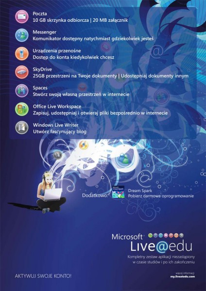 W ramach prezentacji prowadzonych na wyższych uczelniach studenci poznają możliwości platformy Live@Edu, która jest implementowana w sieciach akademickich uczelni, które przystąpiły do programu. W ramach Live@Edu studenci otrzymują szereg narzędzi w ramach usługi Live, umożliwiającej komunikację i rozwój umiejętności oraz wiedzy. Do dyspozycji studentów Microsoft przekazuje skrzynki pocztowe o pojemności 10GB z dostępem z poziomu urządzeń mobilnych, komunikator internetowy, wirtualny dysk o pojemności 25GB, miejsce na własną stronę internetowąmw ramach usługi Spaces, Office Live Workspace pozwalający na pracę z plikami bezpośrednio z poziomu strony internetowej oraz Windows Live Writer – aplikację służącą do tworzenia i pisania blogów.