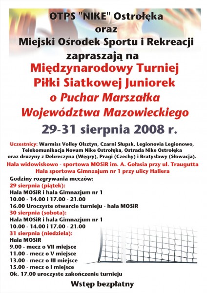 Harmonogram spotkań Turnieju o Puchar Marszałka Województwa Mazowieckiego