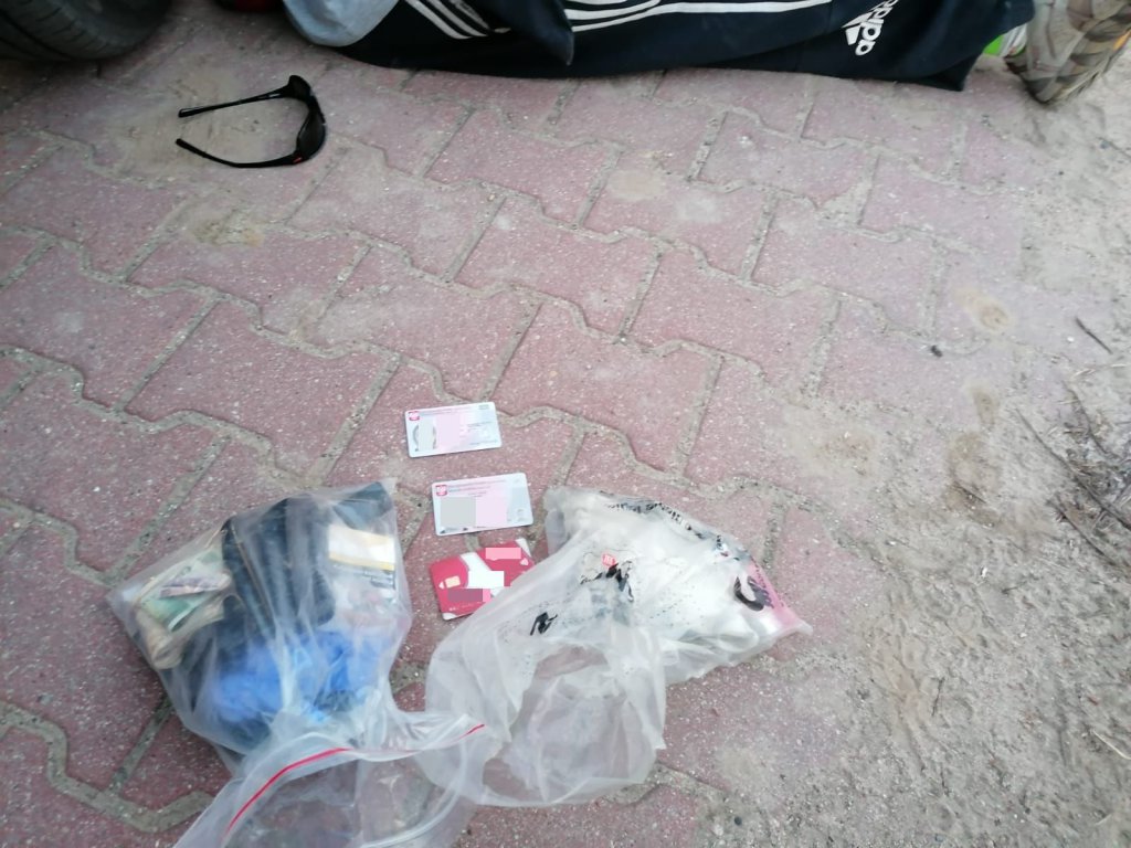 Podczas przeszukania vw, którym poruszali się mężczyźni, znaleziono kolejne porcję marihuany oraz pochodną amfetaminy. Dodatkowo w jednej z toreb znaleziono także małą wagę elektroniczną mogącą służyć do porcjowania narkotyków. Mężczyźni posiadali także dwa dowody osobiste i kartę bankomatową na inne nazwiska. Po sprawdzeniu dokumentów w systemach informatycznych policji okazało się, że jeden z odwodów osobistych figuruje jako utracony.