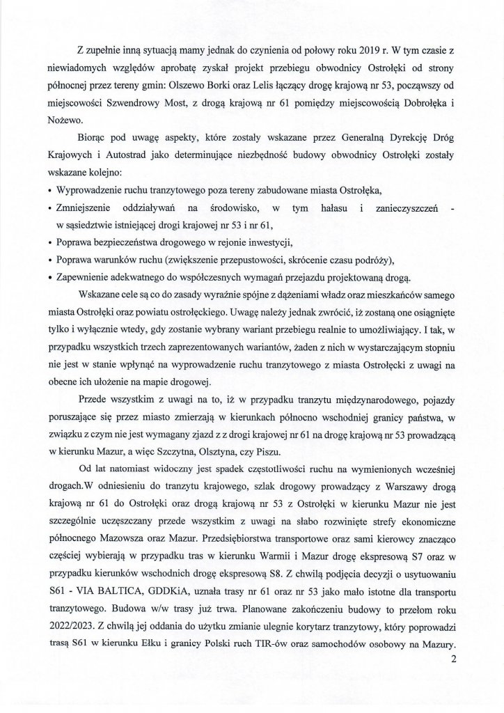 Mieszkańcy gminy wskazują, że żaden z trzech zaprezentowanych wariantów obwodnicy Ostrołęki nie jest w stanie wpłynąć na wyprowadzenie ruchu tranzytowego z Ostrołęki.