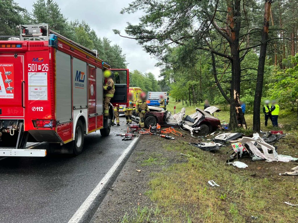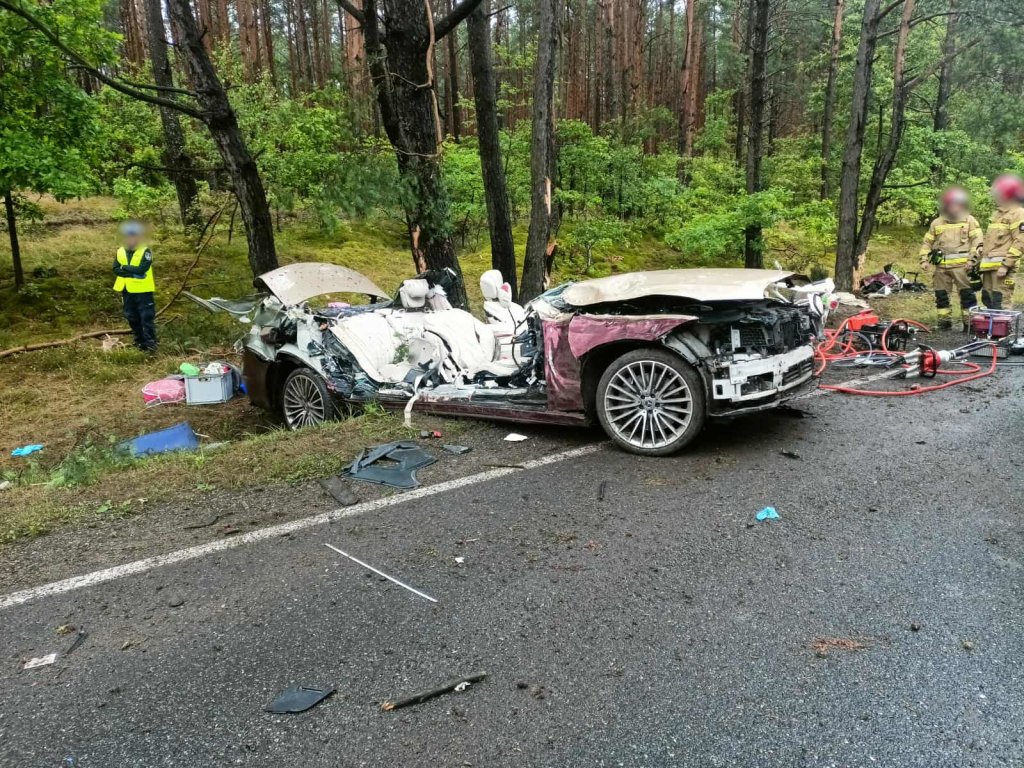 Pojazd, prowadzony przez 74-letnią kobietę, z ogromnym impetem uderzył w dwa przydrożne drzewa. Siła zderzenia była tak duża, że limuzyna została doszczętnie zniszczona, a jej kierująca zakleszczona we wraku. Kobieta podróżowała w towarzystwie psa.