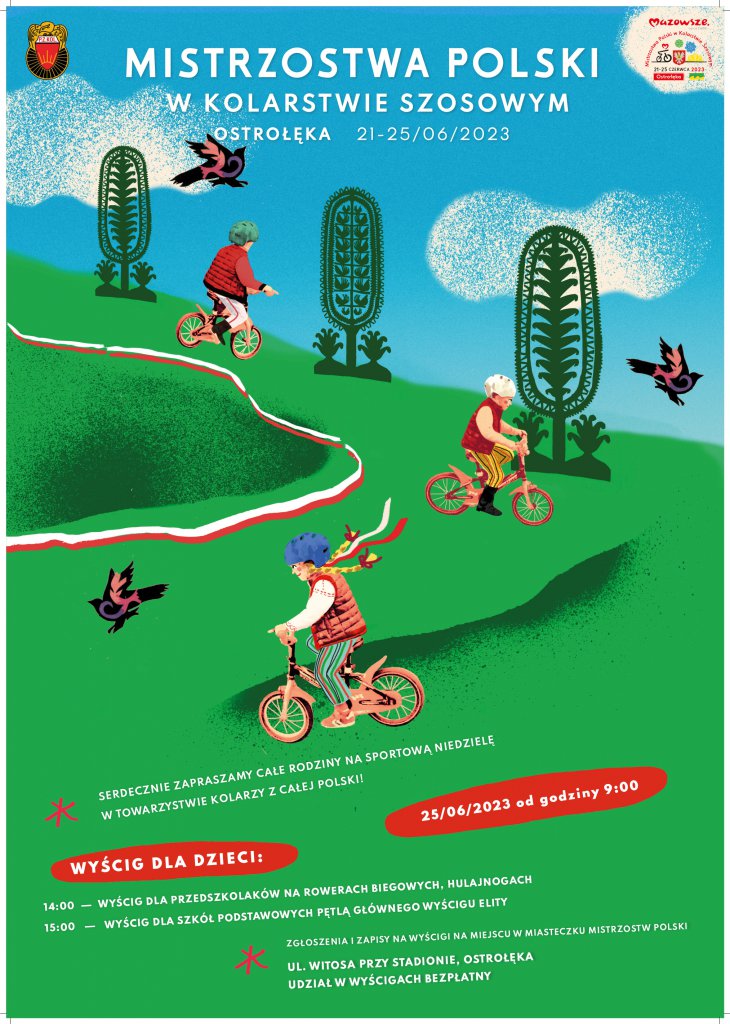 Zachęcamy do kibicowania na terenie Miasteczka Mistrzostw Polski przy ul. Witosa 1 w Ostrołęce w dniach 22-25 czerwca. W niedzielę 25 czerwca zapraszamy do miasteczka mistrzostw na sportową niedzielę w towarzystwie kolarzy z całej Polski. Na dzieci czeka moc atrakcji.