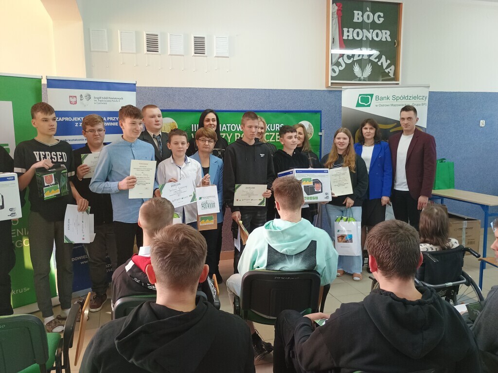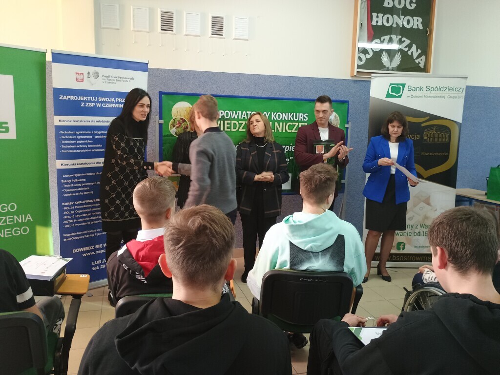 Nagrody w konkursie ufundowane zostały przez Powiat Ostrołęcki, przez wójta gminy Czerwin Pana Grzegorza Długokęckiego oraz Bank Spółdzielczy w Ostrowi Mazowieckiej oddział terenowy w Czerwinie. Panie z jednostki terenowej KRUS oddział w Ostrołęce przeprowadziły z młodzieżą pogadankę na temat bezpieczeństwa pracy w rolnictwie.