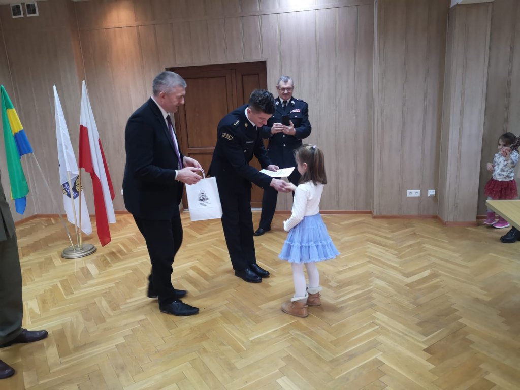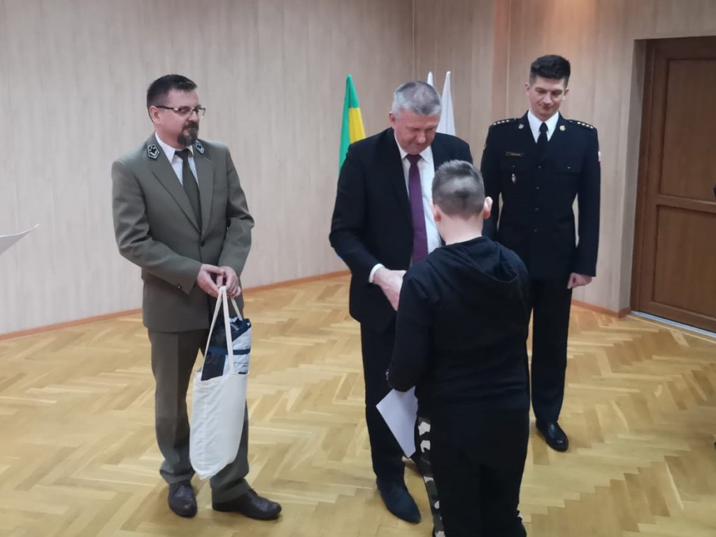 Nagrody wręczyli: Stanisław Kubeł – Starosta Ostrołęcki, st. kpt. Tobiasz Fabiszewski – p. o. Komendant Miejski PSP w Ostrołęce, dh Janusz Głowacki – prezes Zarządu Oddziału Powiatowego ZOSPRP w Ostrołęce, Marek Tomczuk – przedstawiciel Nadleśnictwa Ostrołęka.