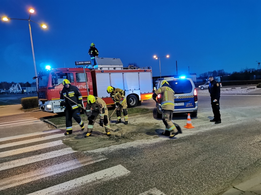 Przypomnijmy – z przejeżdżającego przez rondo auta wyciekł beton, który zalał fragment jezdni i spowodował znaczne utrudnienia w ruchu drogowym. Dzięki błyskawicznej interwencji Straży Miejskiej i straży pożarnej udało się zapobiec większym konsekwencjom.