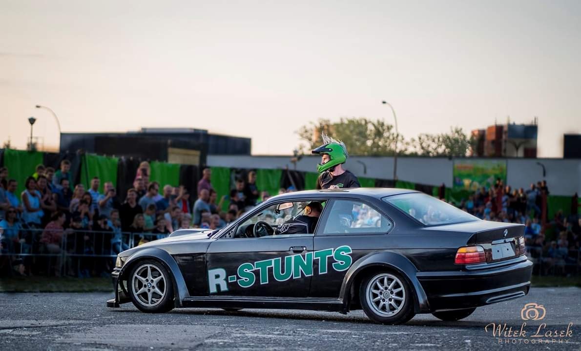 • przebijanie głową płonącej ściany będąc jednocześnie na masce BMW,