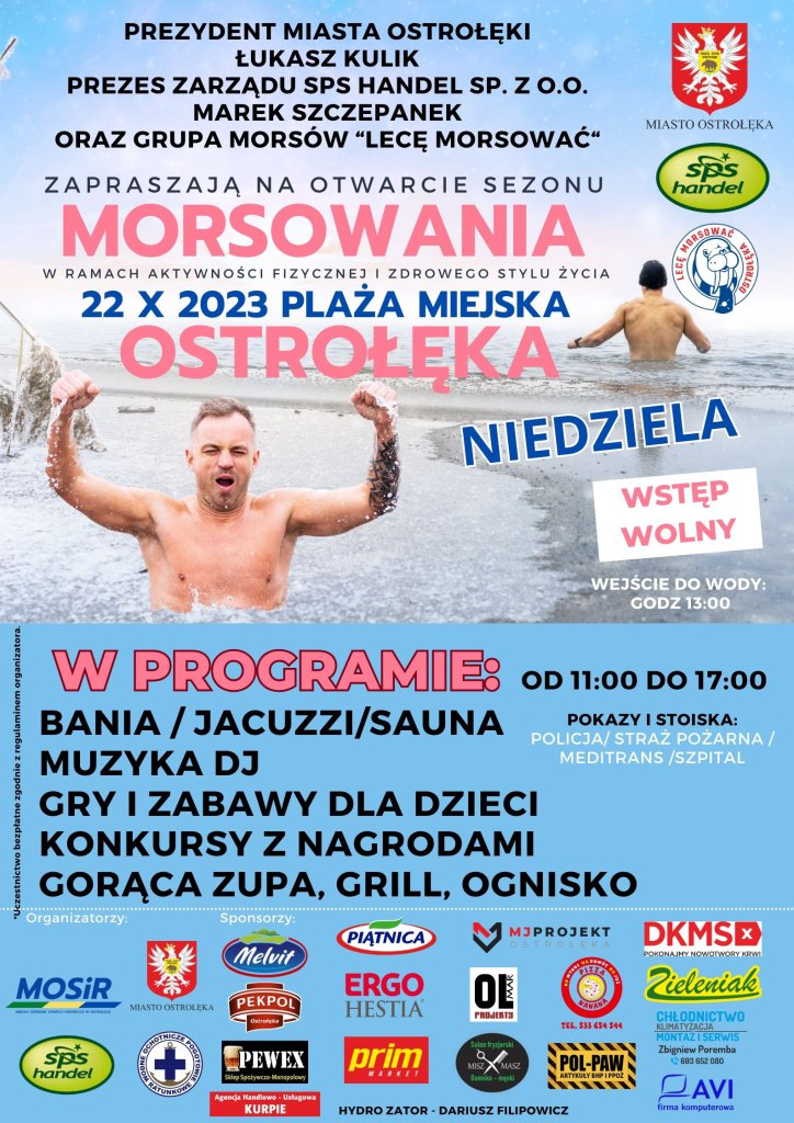 W najbliższą niedzielę na plaży miejskiej w Ostrołęce odbędzie się oficjalne otwarcie sezonu morsowego! Start o godzinie 11:00. Dla wszystkich uczestników przewidziane jest ognisko z kiełbaskami, grill, gorąca zupa, opieka ratownika, mobilna balia i mobilna sauna oraz wiele innych atrakcji. Udział w wydarzeniu jest bezpłatny.