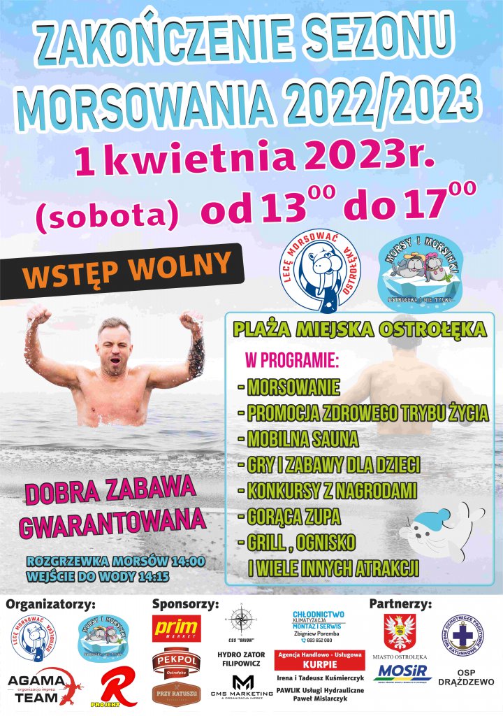 Już 1 kwietnia odbędzie się zakończenie sezonu morsowania 2022/23. Na morsów na plaży miejskiej w Ostrołęce czeka wiele atrakcji.