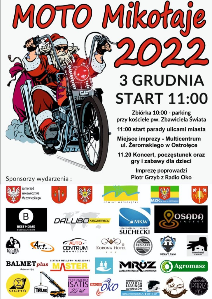 W sobotę, 3 grudnia Ostrołękę opanują Moto-Mikołaje. Na tym wydarzeniu nie może was zabraknąć!