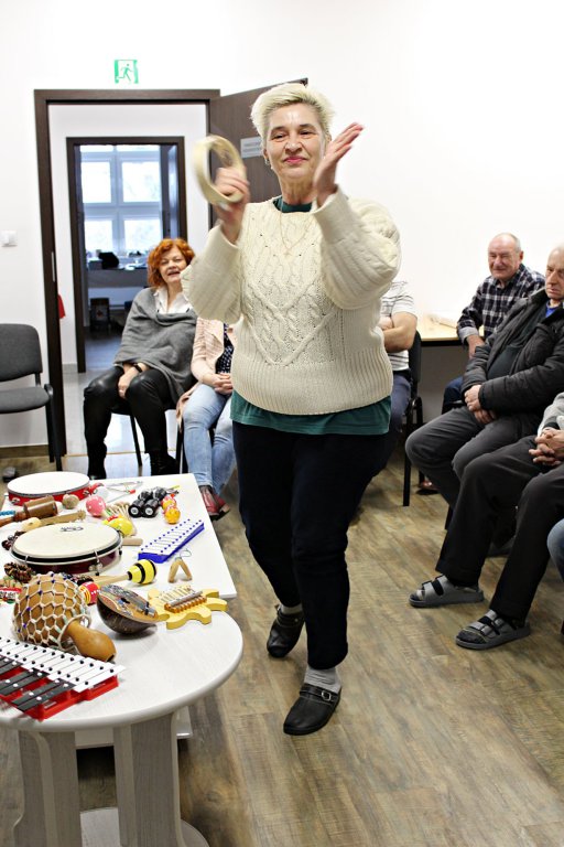 Na pierwszym spotkaniu każdy z seniorów przedstawiał się za pomocą instrumentów. Nie brakowało również tańca i ćwiczeń przy muzyce.