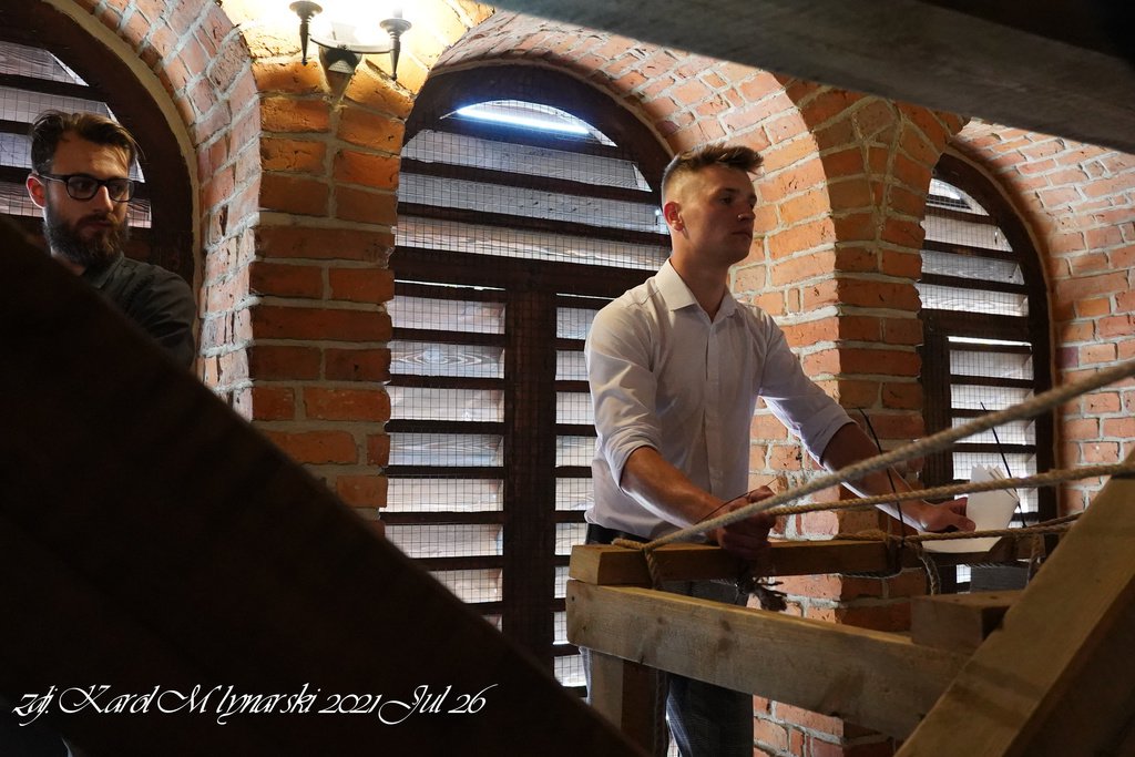 Cykl warsztatów i konkurs bicia w dzwony odbył się w dniu 24 lipca 2021 roku. Unikatowa Dzwonnica w Myszyńcu, w której znajdują się 4 dzwony stała się doskonałym miejscem do organizacji innowacyjnego w skali kraju wydarzenia. Uczestnicy warsztatów poprowadzonych przez Pawła Dąbkowskiego i Dominika Koziatka,poznawali tajnika dzwonienia na: „Chwałę Pana”, „Na żałobę” i „W celu wzywania Bożego Miłosierdzia”. W warsztatach i konkursie wzięło udział 14 uczestników. Komisja, której przewodniczył Pan Paweł Dąbkowski postanowiła podzielić uczestników konkursu na dwie kategorie: dzieci do lat 15 i młodzież i dorośli od 15 lat.