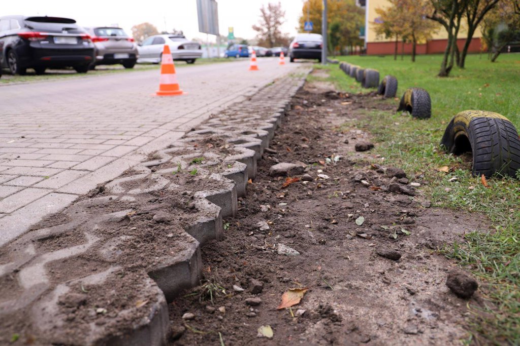Miejsca postojowe znajdujące się od strony bloków podsypane są kruszywem oraz utwardzane. W ten sposób powierzchnia parkowania będzie poszerzona. Do tej pory mieszkańcy skarżyli się na nierówności między płytą ażurową i kostką brukową a gruntem, które stwarzały zagrożenie uszkodzenia auta